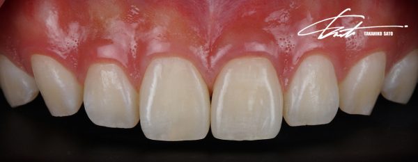 ちなみに、こちら患者様。根管治療とかぶせ物の治療。虫歯治療のダイレクトボンディング1本、審美的なダイレクトボンディング1本行っています。分かりますか?