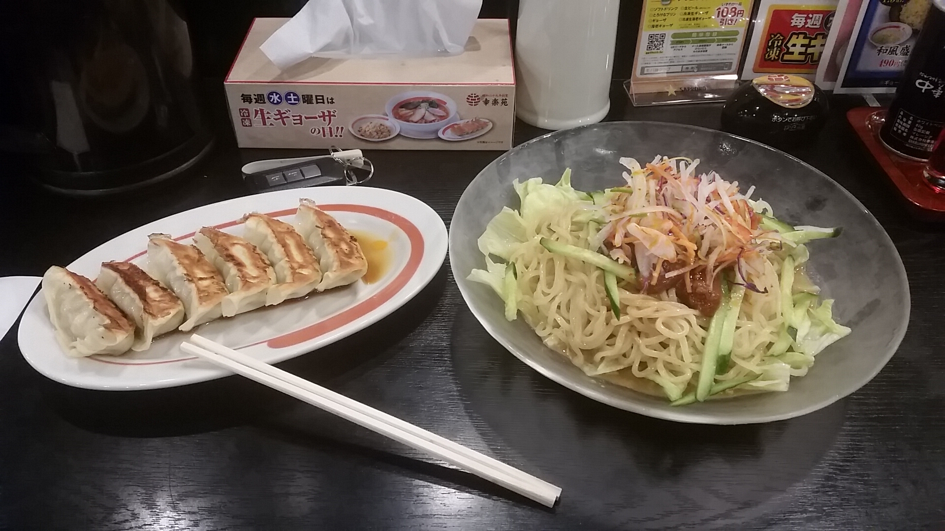 空港から自宅に帰る途中で、冷やし坦々麺と餃子を食べ、このツアーは完全終了となりました。
